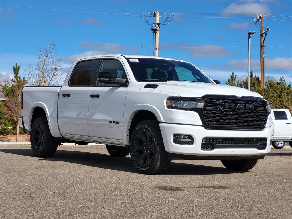 BIG HORN LEVEL 2 EQUIPMENT GROUP SiriusXM Radio Service, Power Adjustable Pedals, Leather Wrapped Steering Wheel, 12 Touchscreen Display, Glove Box Lamp, Auto Power-Folding Mirrors, 115V Auxiliary Rear Power Outlet, Media Hub w/2 Charge Only USBs, Heated Front Seats, Security Alarm, Black Premium Power Mirrors, Premium Overhead Console, 9 Amplified Speakers w/Subwoofer, Disassociated Touchscreen Display, Body Color Fender Flares, Remote Tailgate Release, 115V Auxiliary Power Outlet, LED Dome Lamp w/On/Off Switch, Universal Garage Door Opener, 2nd Row In Floor Storage Bins, Sun Visors w/Illuminated Vanity Mirrors, LED Footwell Lighting, Rear Window Defroster, Rear View Auto Dim Mirror, Rear Power Sliding Window, GPS Navigation, Overhead LED Lamps, Wheels: 20 x 9 Aluminum Chrome Clad, ENGINE: 3.0L I6 HURRICANE SO TWIN TURBO ESS Aux Battery, 700 Amp Maintenance Free Battery, Active Noise Control System, GVWR: 7,100 lbs, 3.55 Rear Axle Ratio, Dual Rear Exhaust w/Bright Tips, Start-Stop Dual Battery System, 230 Amp Alternator, NIGHT EDITION Tires: 275/55R20 OWL All Season, Bridgestone Brand Tires, Accent Color Premium Power Mirrors, Exterior Mirrors w/Supplemental Signals, Black Headlamp Bezels, Exterior Mirrors Courtesy Lamps, Grille Black Surround Black Mesh, Auto Power-Folding Mirrors, Wheels: 20 x 9.0 Aluminum Painted Clad, Auto Dim Exterior Driver Mirror, Black Exterior Truck Badging, Anti-Spin Differential Rear Axle, Accent Color Door Handles, Accent Color Tailgate Handle, Black Interior Accents, Dual Exhaust w/Black Tips, Body Color Front Bumper, Body Color Rear Bumper w/Step Pads, Black Tail Lamp Bezels, RAM Grille Badge - Black, Black Painted Exterior Mirrors Caps, MOPAR FRONT & REAR RUBBER FLOOR MATS, TRANSMISSION: 8-SPEED AUTOMATIC (8HP75). Ram Big Horn with Bright White Clearcoat exterior and Black interior features a Straight 6 Cylinder Engine with 305 HP at 6400 RPM*.