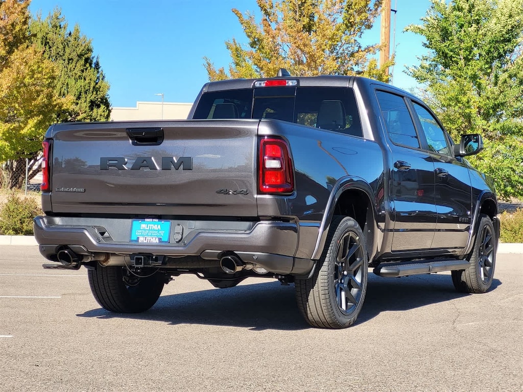 NIGHT EDITION Black Headlamp Bezels, Wheels: 22 x 9 Forged Aluminum, Tires: 285/45R22XL BSW All Season, Pirelli Brand Tires, Proximity Approach/Departure Lamps, Anti-Spin Differential Rear Axle, Accent Color Door Handles, Black Interior Accents, Body Color Front Bumper, Grille Surround 3 Black Texture 2 Black, Body Color Rear Bumper w/Step Pads, RAM Grille Badge - Black, Black Painted Exterior Mirrors Caps, Exterior Mirrors Approach Lamps, Accent Color Premium Power Mirrors, Sport Performance Hood, Black Exterior Truck Badging, Accent Color Tailgate Handle, Dual Exhaust w/Black Tips, Black Tail Lamp Bezels, LARAMIE LEVEL 2 EQUIPMENT GROUP Rain Sensitive Windshield Wipers, Front Passenger Interactive Display, Secondary Active Grille Shutters, Smartphone As A Key Capable, 14.4 Touchscreen Display, Dual Wireless Charging Pad, Radio: Uconnect 5 Nav w/14.4 Display, harman/kardon® 19 Speaker Premium Sound, Cluster 12 TFT Color Display, Power Tailgate, BED UTILITY GROUP MOPAR Spray In Bedliner, MOPAR 4 Adjustable Cargo Tie-Down Hooks, Exterior 115V AC Outlet, MOPAR BLACK TUBULAR SIDE STEPS, MOPAR FRONT & REAR RUBBER FLOOR MATS, TRANSMISSION: 8-SPEED AUTOMATIC (8HP75) (STD), ENGINE: 3.0L I6 HURRICANE SO TWIN TURBO ESS (STD), DUAL-PANE PANORAMIC SUNROOF LED Dome/Reading Lamp, Dome Dual LED Reading Lamp. Ram Laramie with Granite Crystal Metallic Clearcoat exterior and Black interior features a Straight 6 Cylinder Engine with 420 HP at 5200 RPM*.
