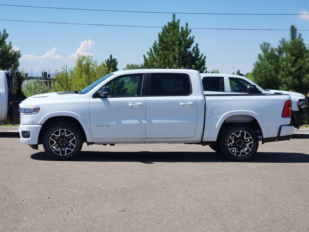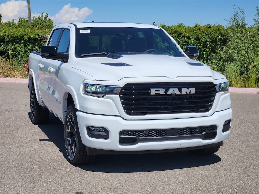 SPORT APPEARANCE PACKAGE Tires: 275/55R20 OWL All Season, Accent Color Premium Power Mirrors, Sport Performance Hood, Black Interior Accents, Body Color Front Bumper, Body Color Rear Bumper w/Step Pads, Bridgestone Brand Tires, Grille Surround 3 Body Color Tex 2 Black, Black Painted Exterior Mirrors Caps, LARAMIE LEVEL 1 EQUIPMENT GROUP Remote Tailgate Release, Secondary Active Grille Shutters, Rain Sensitive Windshield Wipers, Wireless Charging Pad, MOPAR FRONT & REAR RUBBER FLOOR MATS, TRANSMISSION: 8-SPEED AUTOMATIC (8HP75) (STD), ENGINE: 3.0L I6 HURRICANE SO TWIN TURBO ESS (STD), DUAL-PANE PANORAMIC SUNROOF LED Dome/Reading Lamp, Dome Dual LED Reading Lamp. Ram Laramie with Bright White Clearcoat exterior and Black interior features a Straight 6 Cylinder Engine with 420 HP at 5200 RPM*.