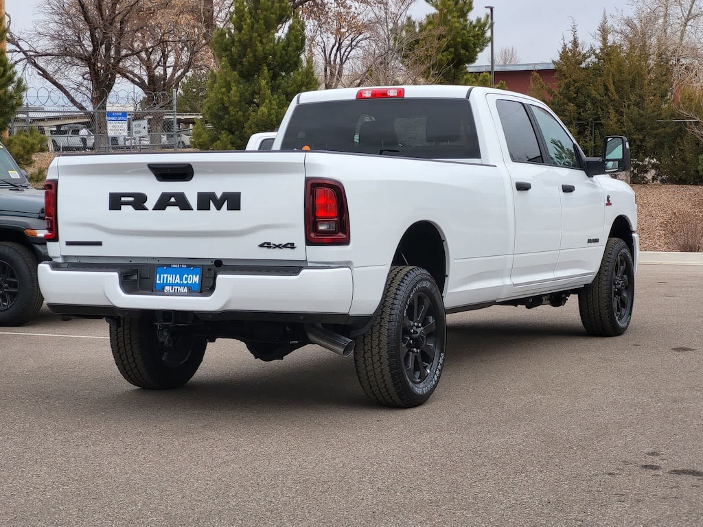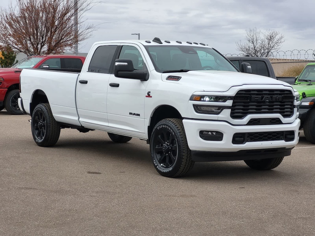 ENGINE: 6.7L I6 CUMMINS HO TURBO DIESEL Selective Catalytic Reduction (Urea), Dual 730 Amp Maintenance Free Batteries, Cummins Turbo Diesel Badge, Heavy Duty Engine Cooling, Diesel Exhaust Brake, Supplemental Heater, 3.42 Axle Ratio, Front Bumper Sight Shields, Capless Fuel Fill w/o Discriminator, GVWR: 11,040 lbs, BIG HORN LEVEL 1 PLUS EQUIPMENT GROUP Emergency Vehicle Alert System (EVAS), 12 Touchscreen Display, Glove Box Lamp, Auto Power-Folding Mirrors, Footwell Courtesy Lamp, Anti-Spin Differential Rear Axle, MOPAR Deployable Bed Step, Alexa Built-In, Forward & Reverse Utility Lights, Locking Lower Glove Box, Remote Start System, 9 Alpine Speakers w/Subwoofer, Disassociated Touchscreen Display, Dual Glove Boxes, 2nd Row In Floor Storage Bins, Rear View Auto Dim Mirror, Rear Dome w/On/Off Switch Lamp, LED Bed Lighting, GPS Navigation, SiriusXM w/360L, Connected Travel & Traffic Services, Foam Bottle Insert (Door Trim Panel), Big Horn IP Badge, Off-Road Info Pages, Trailer Tow Pages, HD Radio, Radio: Uconnect 5 Nav w/12.0 Display, Power Heated Folding Telescopic Mirrors, Steering Wheel Mounted, NIGHT EDITION Gloss Black Nostrils/Mic Black Grille, Tires: LT285/60R20E OWL On/Off Road, Black Exterior Truck Badging, Wheels: 20 x 8.0 Black Painted Aluminum, Body Color Grille-Surround, Black Interior Accents, Black Wheel Center Hub, Painted Front Bumper, Painted Rear Bumper, HEATED SEATS & WHEEL GROUP Heated Steering Wheel, Heated Front Seats, BLACK, PREMIUM CLOTH BUCKET SEATS Bucket Seats, Power Adjust 8-Way Driver Seat, Folding Flat Load Floor Storage, Rear 60/40 Folding Seat, Front Seat Back Map Pockets, Power 2-Way Driver Lumbar Adjust, Full Length Upgraded Floor Console, MOPAR FRONT & REAR RUBBER FLOOR MATS, TRANSMISSION: 8-SPEED TORQUEFLITE HD AUTOMATIC. Ram Big Horn with Bright White Clearcoat exterior and Black interior features a Straight 6 Cylinder Engine with 430 HP at 2800 RPM*.