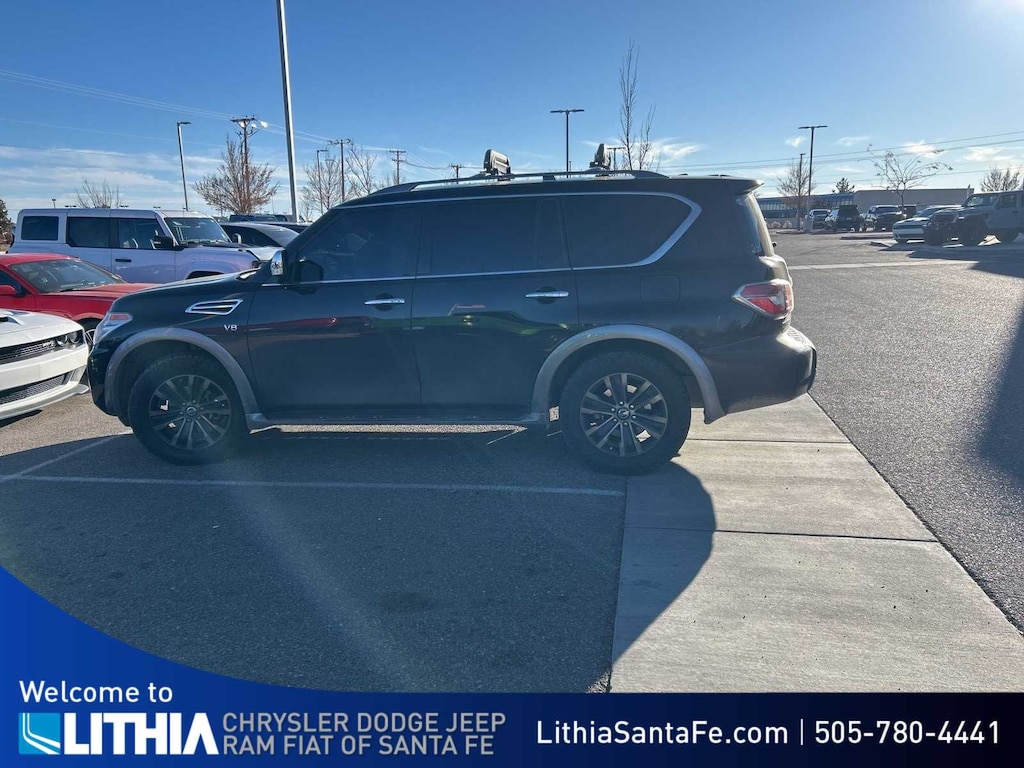 ROOF RAIL CROSS BARS, 2ND & 3RD ROW CARPETED MATS. Nissan Platinum with Super Black exterior and Almond interior features a 8 Cylinder Engine with 390 HP at 5800 RPM*.